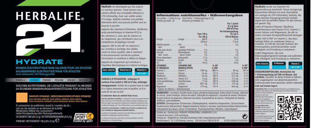 H24 Hydrate Kalorienarmes Elektrolytgetränk. Die wichtigsten Vorteile • Kalorienarmes Getränk für Sportler zur Unterstützung der Flüssigkeitszufuhr Nutzung Vermischen Sie 1 Portionspackung mit 500 ml Wasser. Gut schütteln.